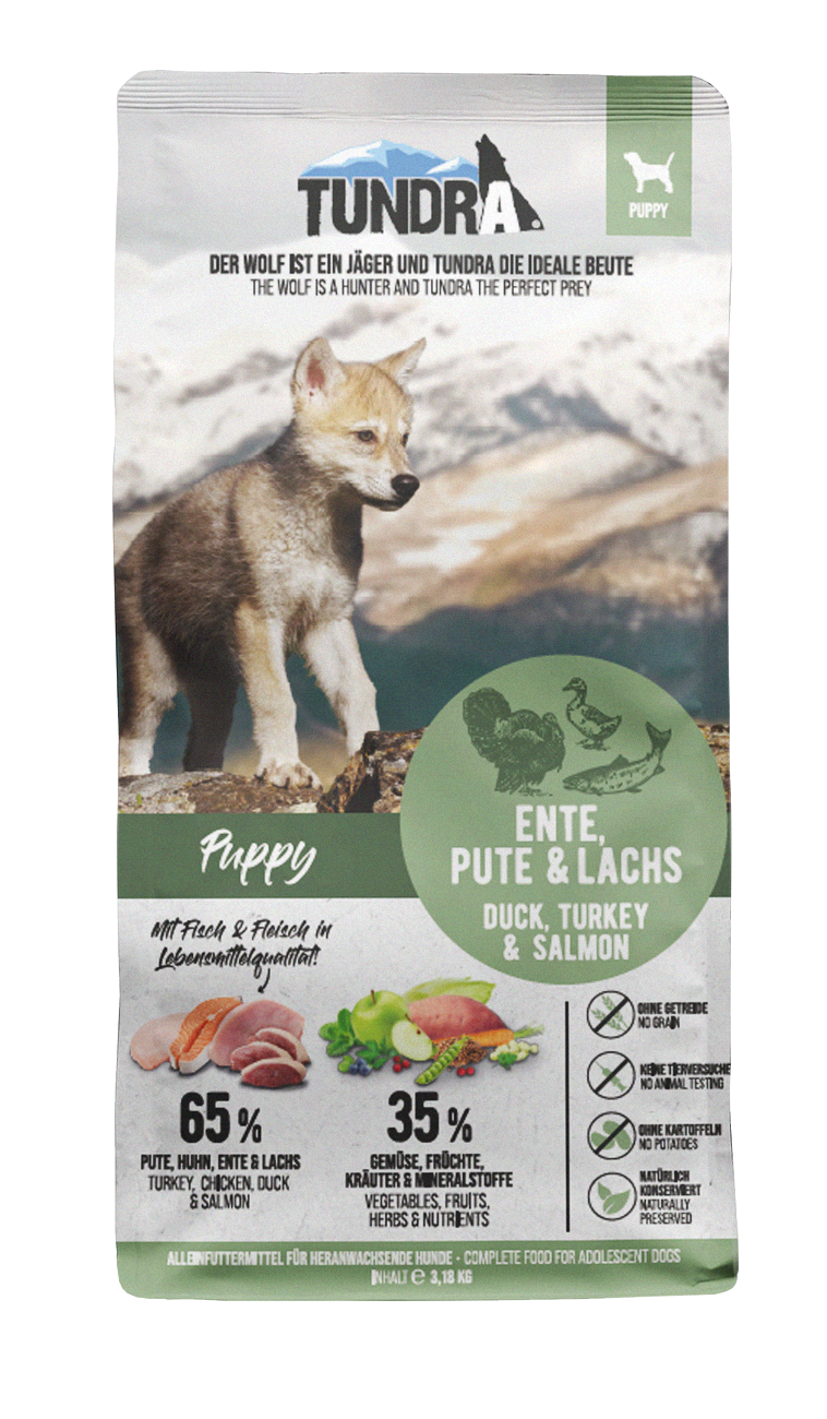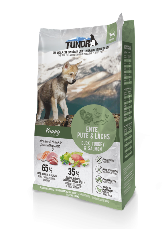 Compozitie: 65% curcan, pui, rață și somon (format din 25% curcan proaspăt, 16% pui uscat și măcinat, 10% grăsime de pui, 9% somon uscat și măcinat, 5% rață uscată și măcinată), amidon de mazăre, mazăre, câmp fasole, seminte de in, drojdie, pulpa de sfecla* (deshidratata), minerale, faina de alge marine, manan-olgozaharide (MOS), yucca schidigera, cartofi dulci, cicoare, morcovi*, mere*, afine, merisoare, frunze de patrunjel, frunze de menta, verde frunze de ceai (*uscate)