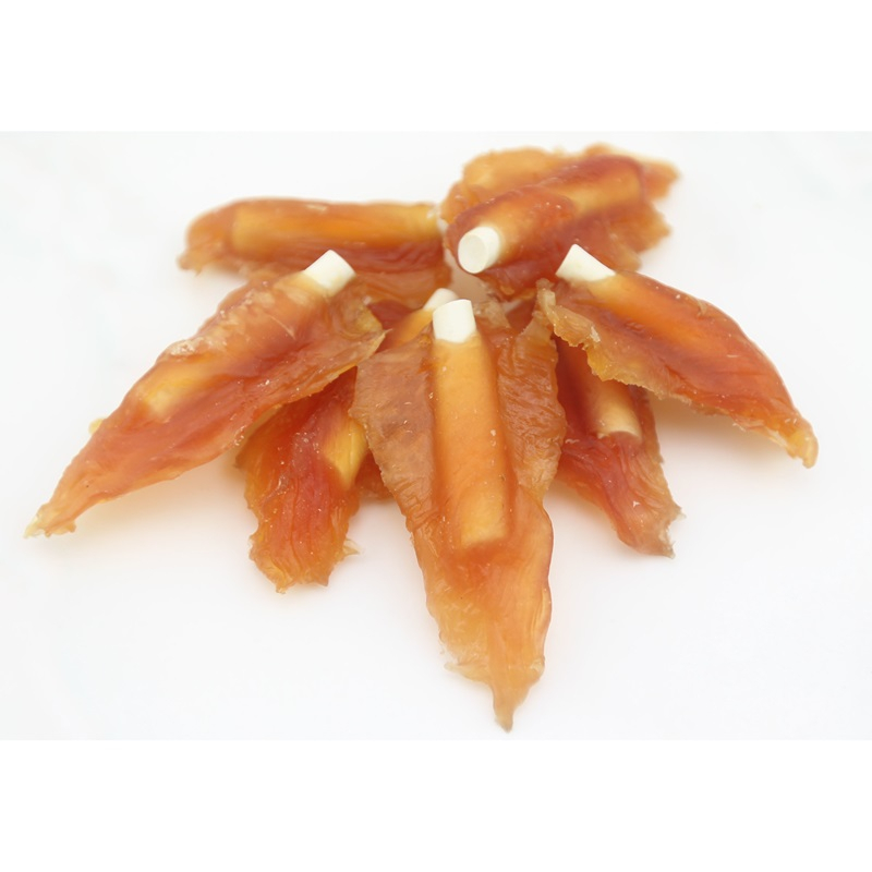 Ingrediente: Pui 79%, bastonase de calciu 7%, glicerina 5%, amidon 4.5%, proteina de mazare 1.5%, proteina de arahide 1%, proteina de soia 1%, sorbitol: 0.8%, sare 0.2%